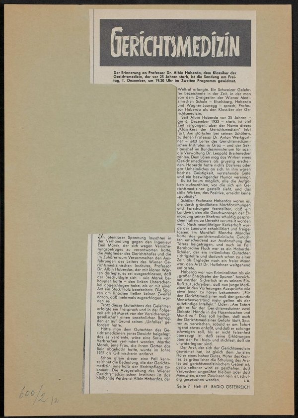 Zeitungsausschnitt aus: Radio Österreich, Heft 49, S. 7.