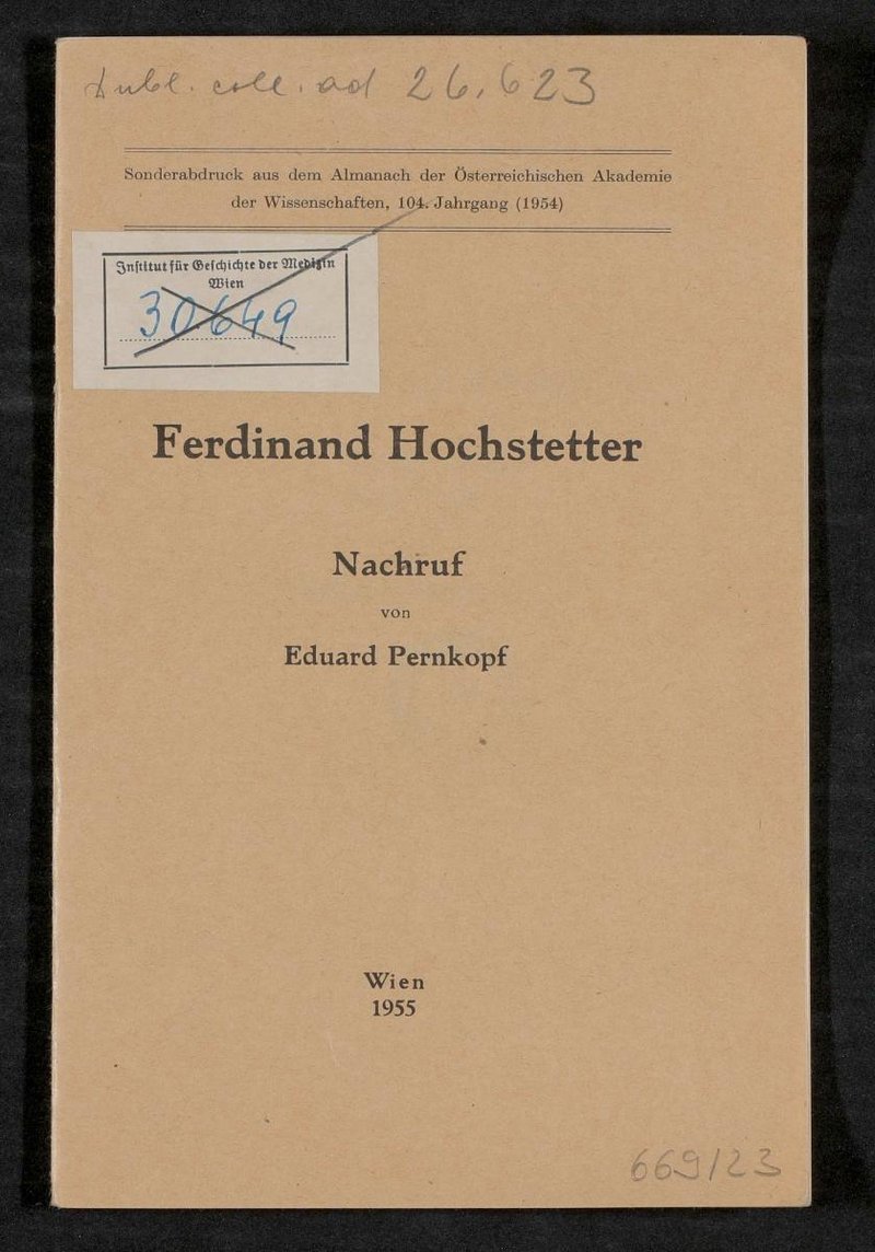Es handelt sich um einen 24-seitigen Sonderdruck aus dem Almanach der Österreichischen Akademie der Wissenschaften, 104. Jg., 1954, S. 386-402, inkl. Porträt-Abbildung, gedruckt von Adolf Holzhausens, Nachfolger, Wien 1954.