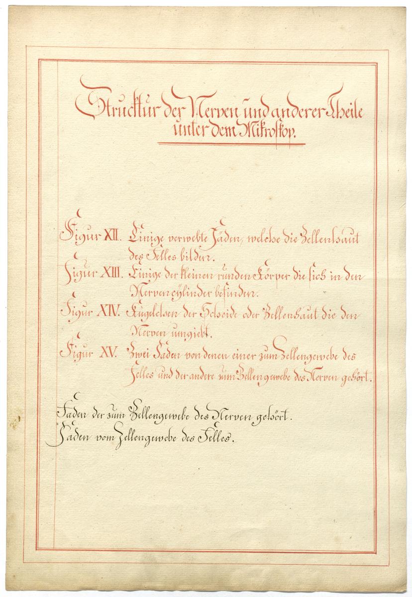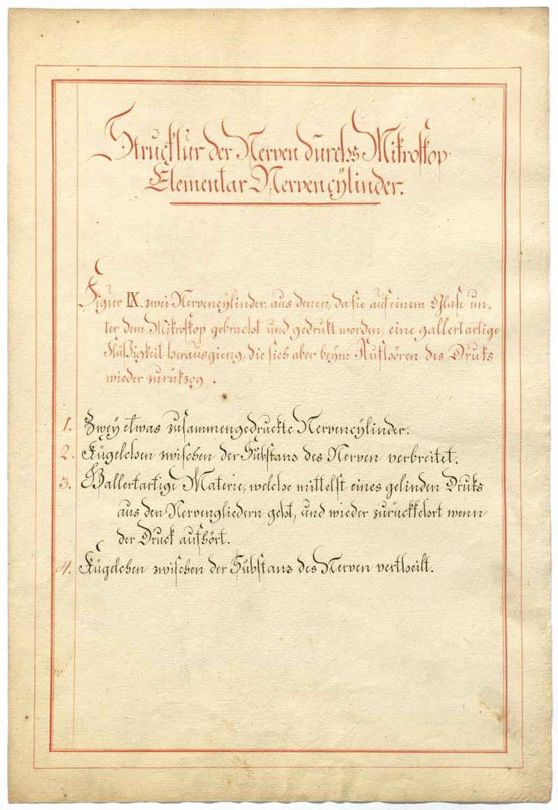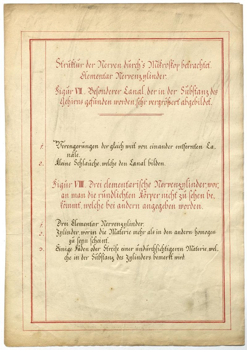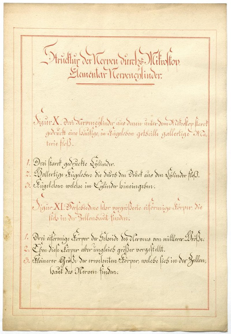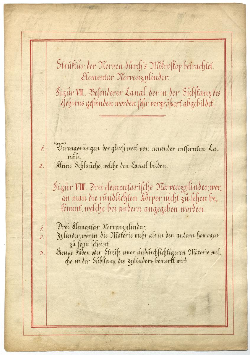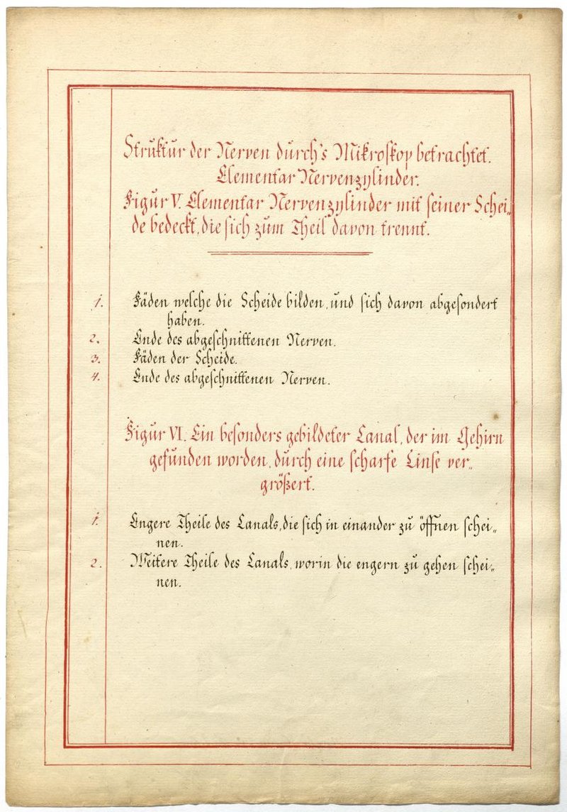 Der Text ist die ergänzende Beschreibung in deutscher Sprache zum anatomischen Wachsmodell der Nerven. Das Präparat und die kolorierte Zeichnung fehlen. Es ist wahrscheinlich, dass dies die Fortsetzung zu den Beschreibungen AT-MUW-BD-000400-0001-0002-3 ist.