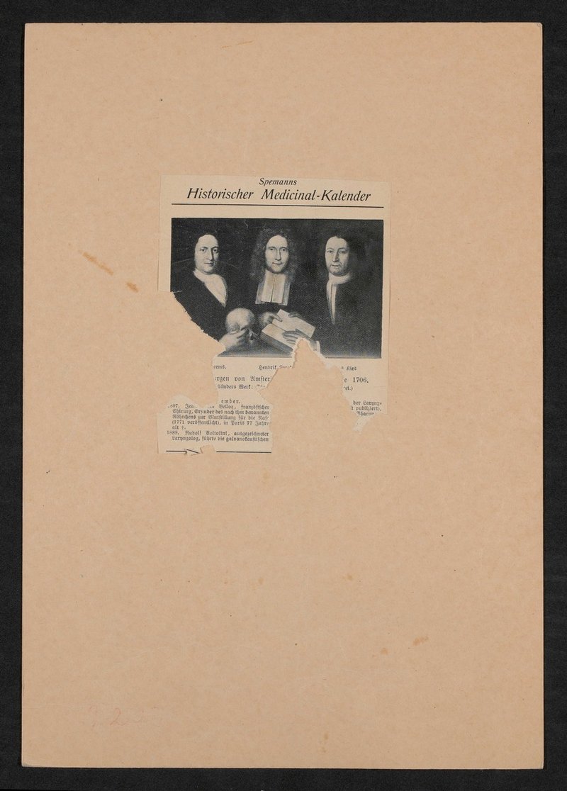 Ausschnitt aus: Spemanns Historische-Medicinal Kalender. Das Bild stammt aus: Eugen Holländer, Die Medizin in der klassischen Malerei, 1903.