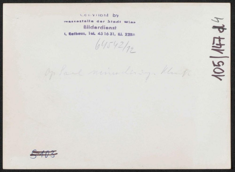Die Fotografie stammt vom Bilderdienst der Pressestelle der Stadt Wien, Wien. Neg I 42/1