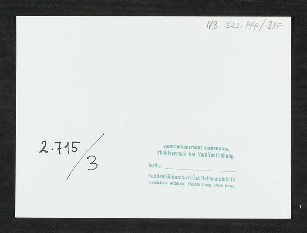 Die um 1936 angefertigte Vorlage stammte aus der Österreichischen Nationalbibliothek, Wien. Neg (9x12) 125