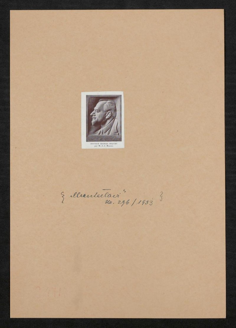 Ausschnitt aus: Chanteclair, Nr. 296, 1933. Die Plakette wurde von Jan und Joël Martel angefertigt.