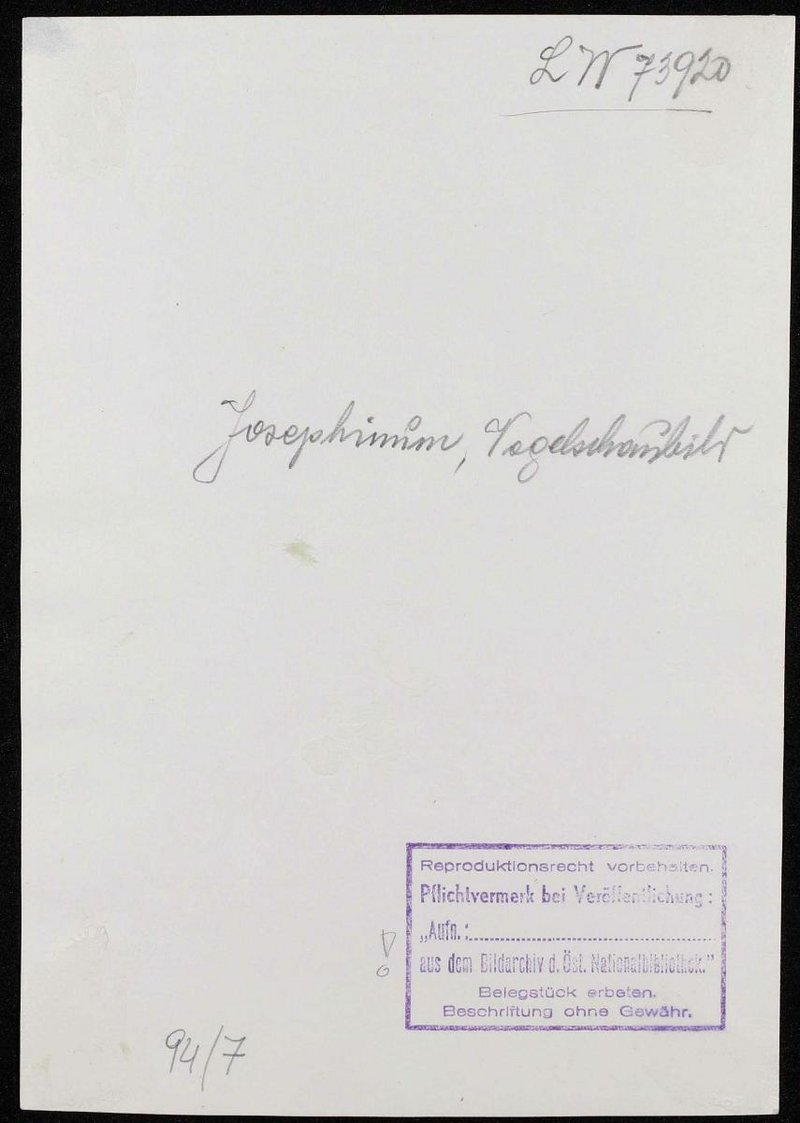 Fotografie einer Zeichnung oder eines Druckes. Die Fotografie stammt aus dem Bildarchiv der Österreichischen Nationalbibliothek. Vermerk auf für Rückseite, LW 73920. Neg I 65/19, 20 Neg III 203/7, 8