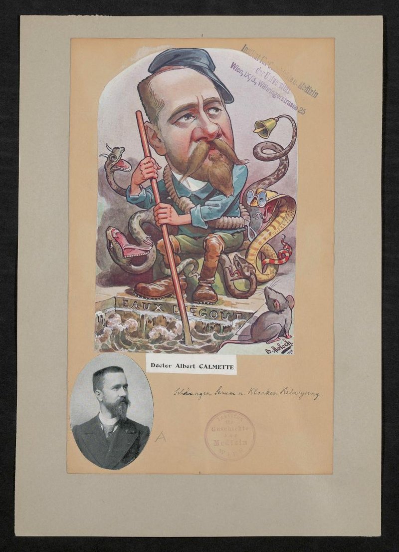 Die Karikatur wurde von B. Moloch, Pseudonym für Alphonse Hector Colomb, angefertigt und in der französischsprachigen Zeitschrift Chanteclair, Nr. 33, 1909, veröffentlicht. Die fotografische Vorlage stammte von Pierre Petit. Vorderseitig mit zwei Stempeln des Instituts für Geschichte der Medizin, Wien, versehen.