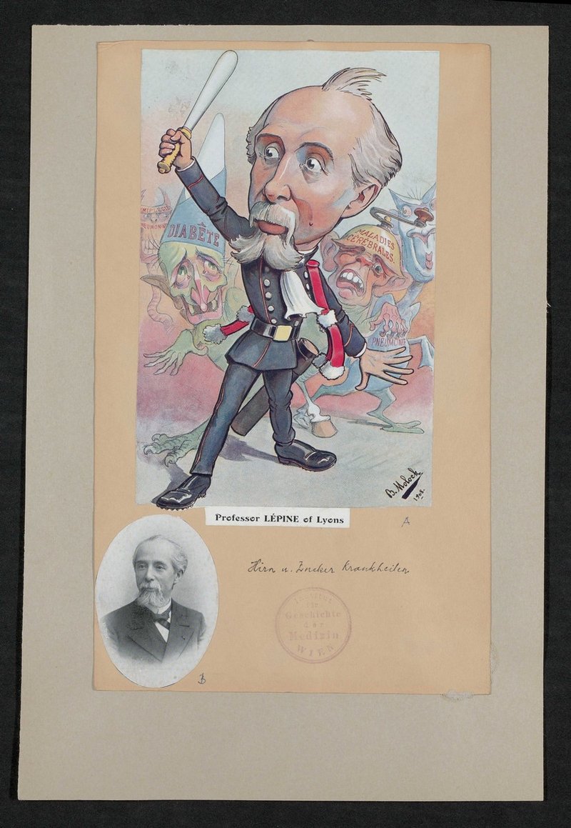 Die Karikatur ist der französischsprachigen Zeitschrift Chanteclair entnommen worden. Vorderseitig mit einem Stempel des Instituts für Geschichte der Medizin, Wien, versehen.