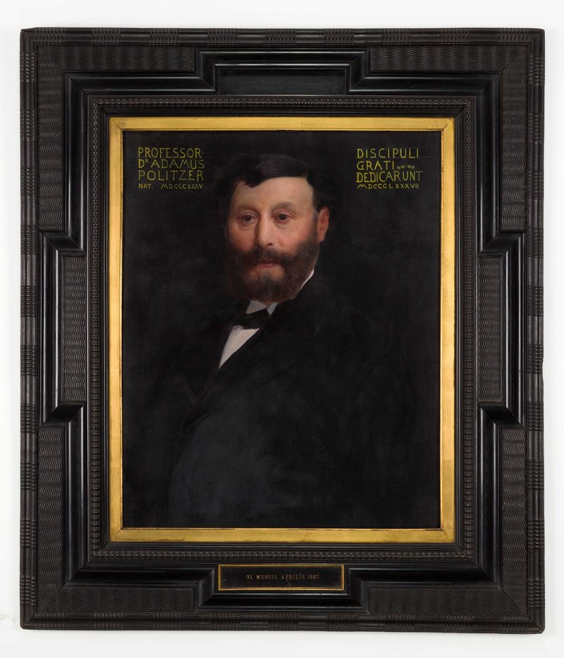 Fälschlich angenommen, dass es ein Werk von Ernst Klimt ist. Vermutlich stammt es von Karl Probst (Grazzi V., Pritchard U., Joly A., Rohrer F., Morpurgo E., Rühlmann A., Pins E., Bericht über das Jubiläum der 25jährigen Lehrtätigkeit des Professors Dr. Adam Politzer an der Wiener Universität. Wien : Bergmann, 1887, S. 3) Digitalisat von Reiner Riedler.