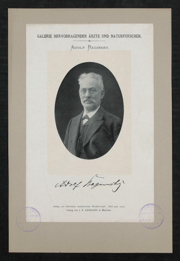 Auszug aus: Galerie hervorragender Ärzte und Naturforscher, in: Beilage zur Münchener medizinischen Wochenschrift, 1913, Bl. 320. Unter dem Bild befinden sich Stempel des Institutes für Geschichte der Medizin, Wien.