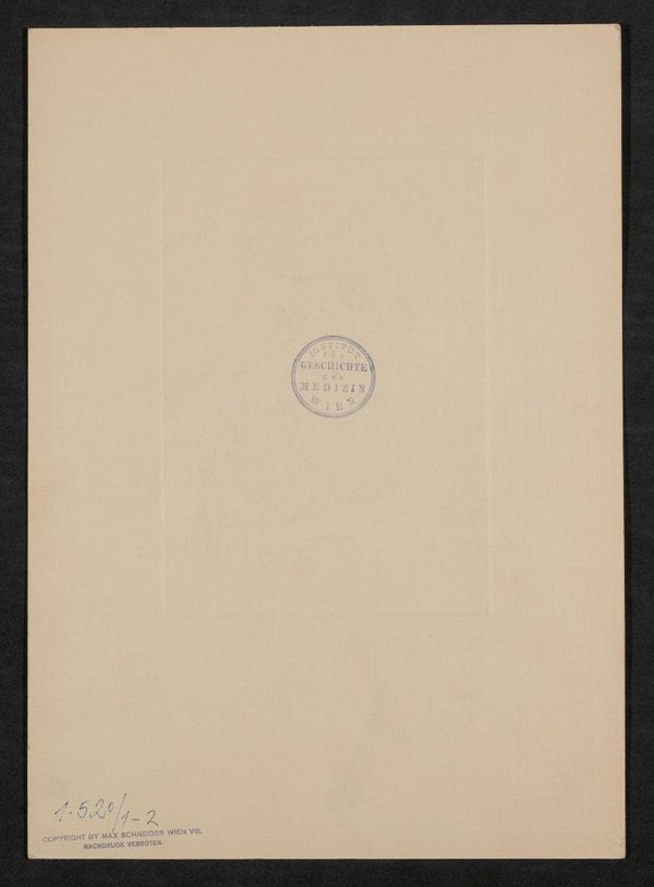 Die Fotografie wurde von Max Schneider, Wien, angefertigt. Vorder- und rückseitig mit einem Stempel des Institutes für Geschichte der Medizin, Wien, versehen.