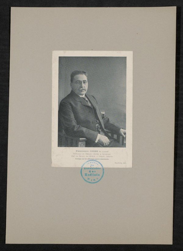 Ausschnitt aus einer französischsprachigen Zeitschrift, herausgegeben von Deschiens. Vorderseitig mit einem Stempel des Institutes für Geschichte der Medizin, Wien, versehen.