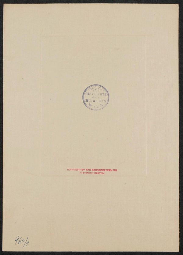 Rückseitig mit einem Copyright-Stempel von Max Schneider als Urheber der Fotografie versehen. Außerdem vorder- und rückseitig mit einem Stempel des Instituts für Geschichte der Medizin, Wien, versehen.
