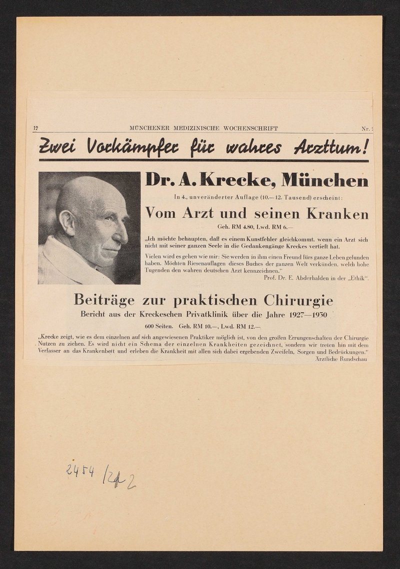 Ausschnitt aus: Münchener Medizinische Wochenschrift, Juni 1934. Die als Vorlage dienende Fotografie ist vermutlich von Eduard Wasow angefertigt worden.