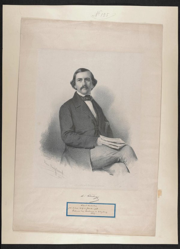 Lithografie von Franz Hanfstaengl, nach einer Zeichnung von Hanns Hanfstaengl aus dem Jahr 1855 und einem Gemälde von Clementine Stockar Escher. Mit Notiz von Theodor Billroth. Neg. I 189/22, 23 Neg III 126/3