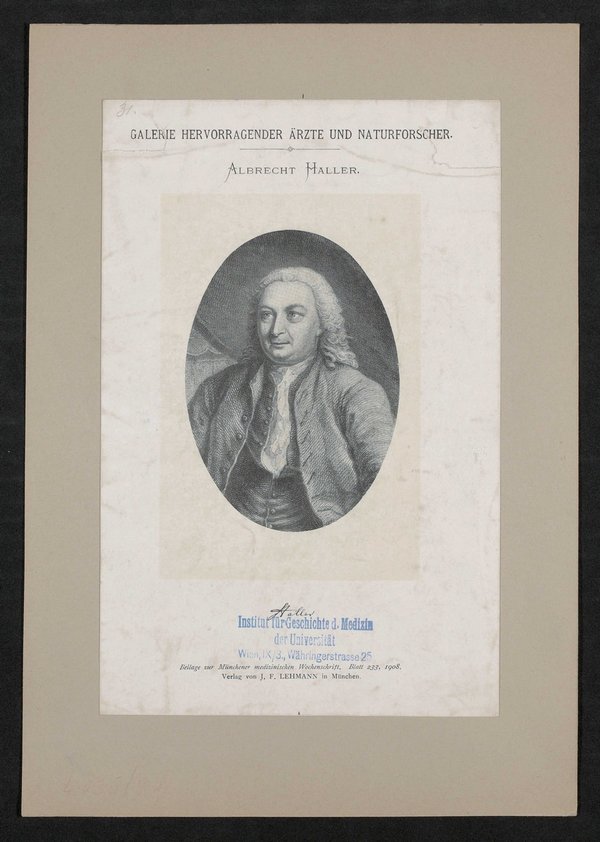Auszug aus: Galerie hervorragender Ärzte und Naturforscher, in: Beilage zur Münchener medizinischen Wochenschrift, 1908, Bl. 233. Vorderseitig mit einem Stempel des Instituts für Geschichte der Medizin, Wien, versehen.