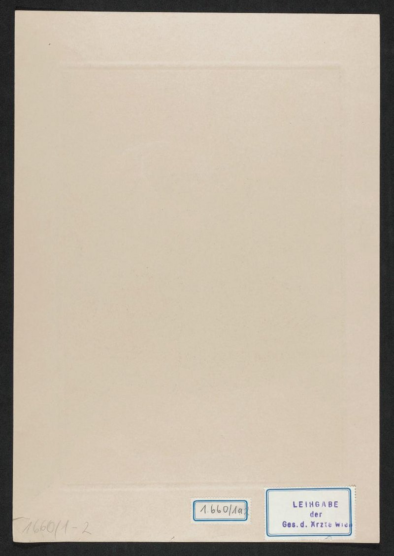 Die Heliogravüre wurde von Adolf Eckstein, Berlin-Charlottenburg, nach einer Fotografie von Nikolaus Stockmann, Wien, angefertigt. Rückseitig mit einem Vermerk einer Leihgabe der Gesellschaft der Ärzte, Wien, versehen. Neg. III. 158/8