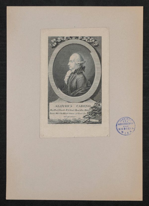 Der Kupferstich wurde von Joseph Georg Mansfeld, Wien, auf Grundlage eines Gemäldes von Tessari angefertigt. Vorderseitig mit einem Stempel des Instituts für Geschichte der Medizin, Wien, versehen.
