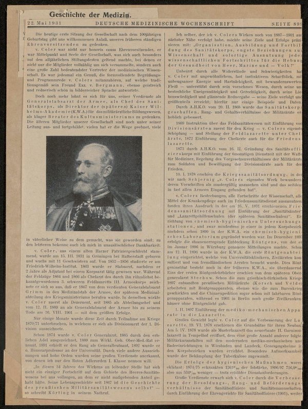 Ausschnitt aus der Deutschen Medizinischen Wochenschrift vom 22. Mai 1931.