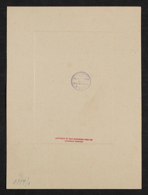 Die Fotografie wurde von Max Schneider, Wien, angefertigt. Vorder- und Rückseitig mit jeweils einem Stempel des Institutes für Geschichte der Medizin, Wien, versehen.