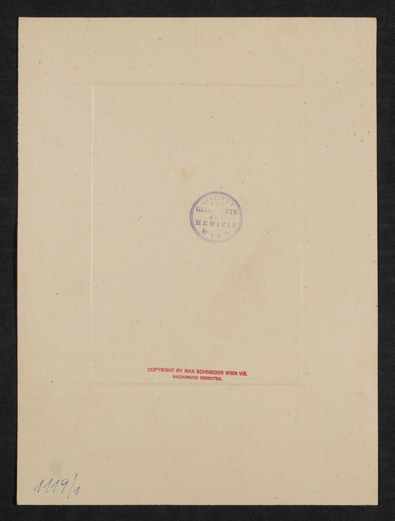 Die Fotografie wurde von Max Schneider, Wien, angefertigt. Vorder- und Rückseitig mit jeweils einem Stempel des Institutes für Geschichte der Medizin, Wien, versehen.
