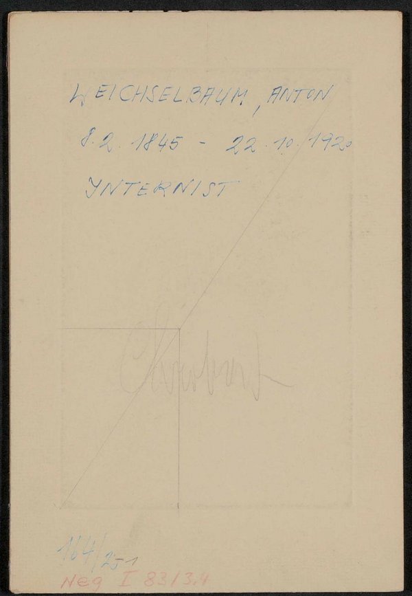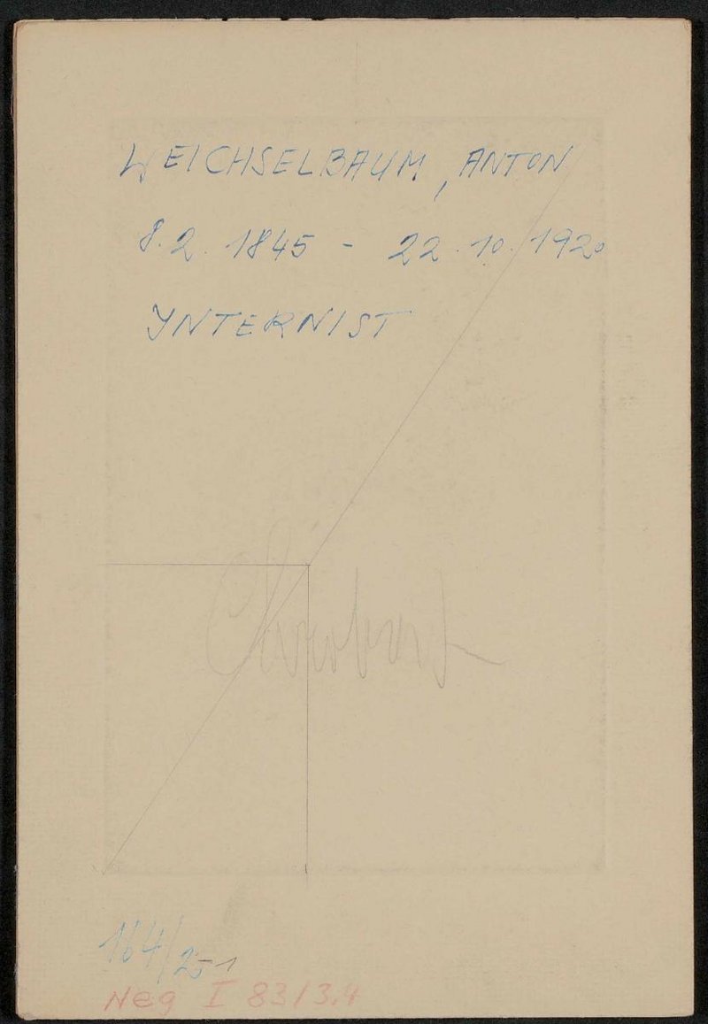Die Fotografie wurde von Ludwig Grillich, Wien, angefertigt. Auf der Rückseite sind das Geburts- und Sterbedatum und die Berufsbezeichnung als Internist notiert. Neg I 83/3, 4