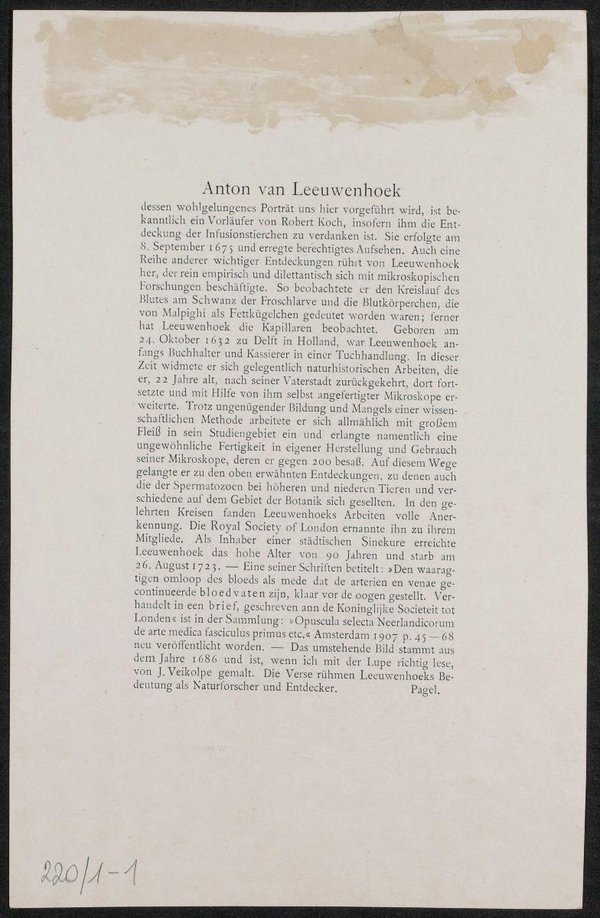 Nach einer Malerei von Jan Verkolje. Auszug aus: Kunstbeilage 66 zur Deutschen Medizinischen Wochenschrift, Leipzig, Nr. 22, 1911. Neg, III 83/3 Neg, (9x12) 1.030