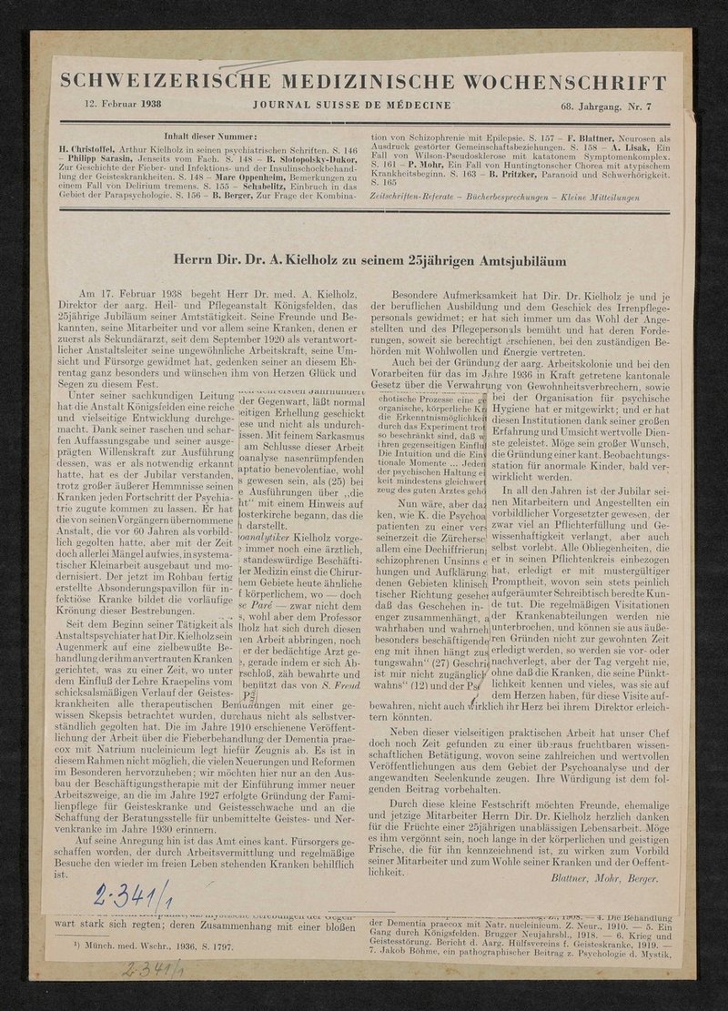 Bild und Berichte sind der Schweizerischen Medizinischen Wochenschrift, Nr. 7, 68. Jg., 12. Februar 1938, entnommen worden.