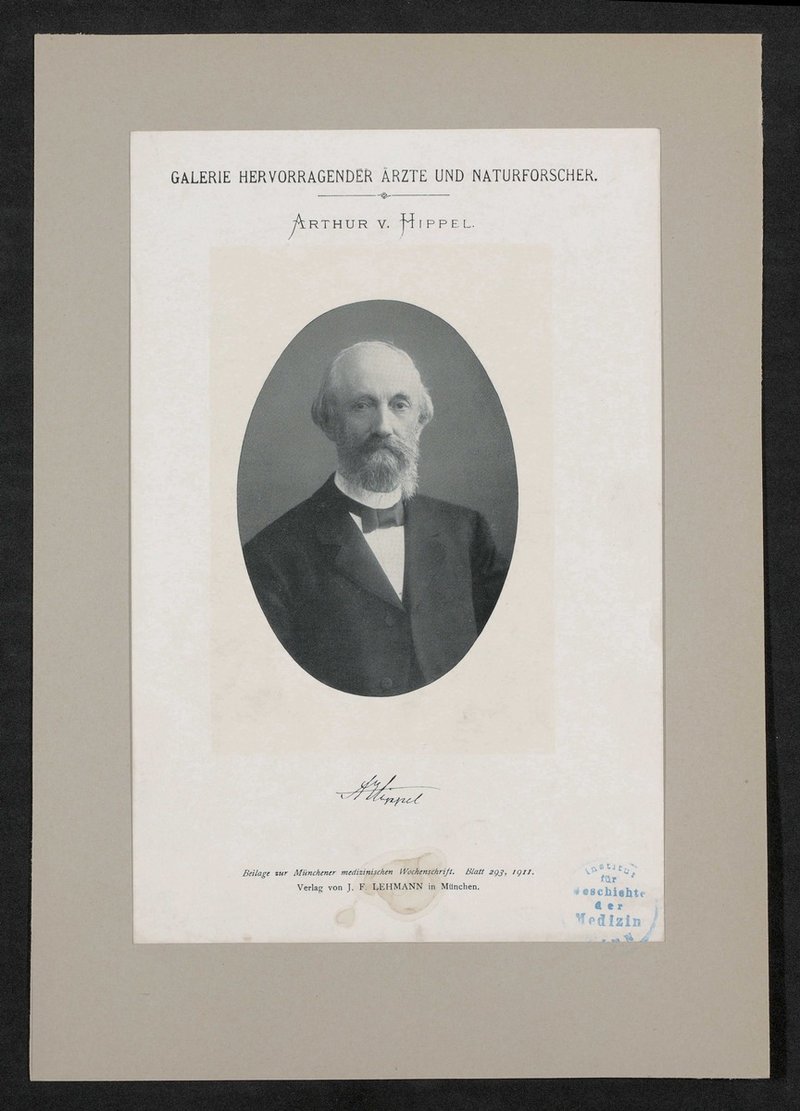 Auszug aus: Galerie hervorragender Ärzte und Naturforscher, in: Beilage zur Münchener medizinischen Wochenschrift, 1911, Bl. 293. Vorderseitig mit einem Stempel des Instituts für Geschichte der Medizin, Wien, versehen.