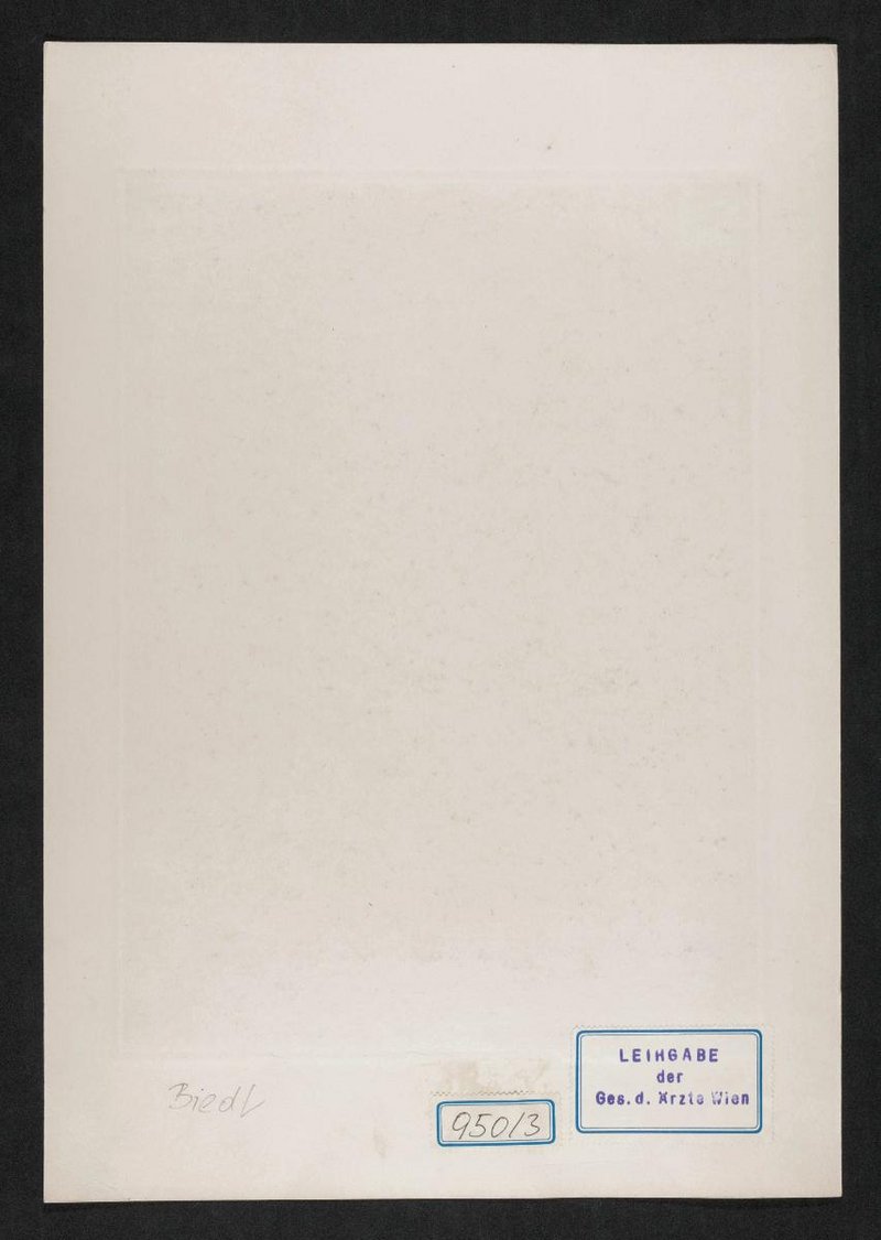 Die Heliografie wurde nach einer Fotografie vermutlich von Julius Weiner angefertigt und ist einem Buch von Clement Deltour, Nos Contemporains, Paris/Le Pecq, entnommen. Rückseitig befindet sich ein Stempel der Gesellschaft der Ärzte, Wien.