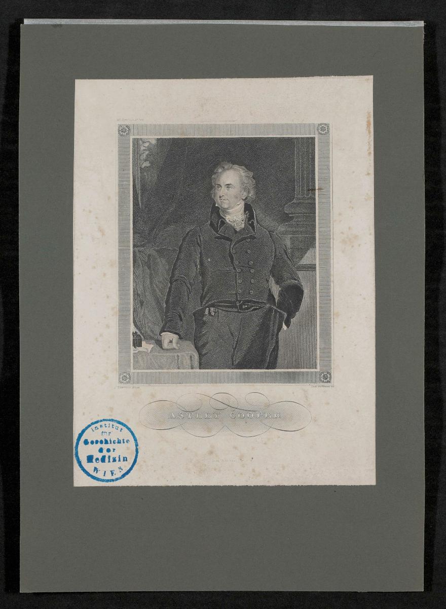 Der Stahlstich wurde von Ludwig Hoffmann nach einem Gemälde von Thomas Lawrence angefertigt. Ausschnitt aus: Meyers Konversations-Lexikon, Nr. 104. Vorder- und rückseitig mit einem Stempel des Institutes für Geschichte der Medizin, Wien, versehen.