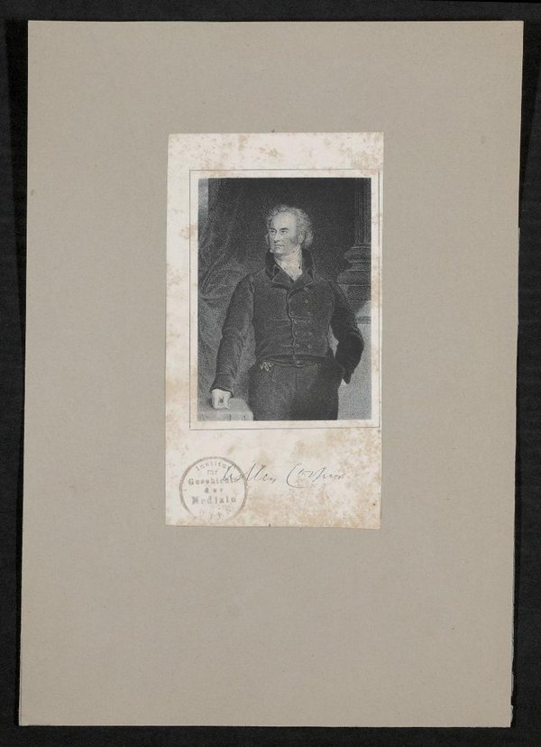 Die Lithografie wurde nach einem Gemälde von Thomas Lawrence angefertigt. Vorderseitig mit einem Stempel des Institutes für Geschichte der Medizin, Wien, versehen.