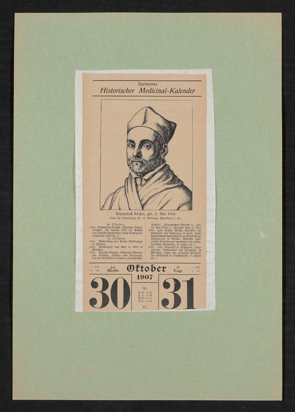 Das Porträt ist Spemans Historischem Medicinal-Kalender, 30. und 31. Oktober 1907, entnommen worden. Die Vorlage stammte aus der Sammlung von Ernst Roediger, Dr., Frankfurt am Main.