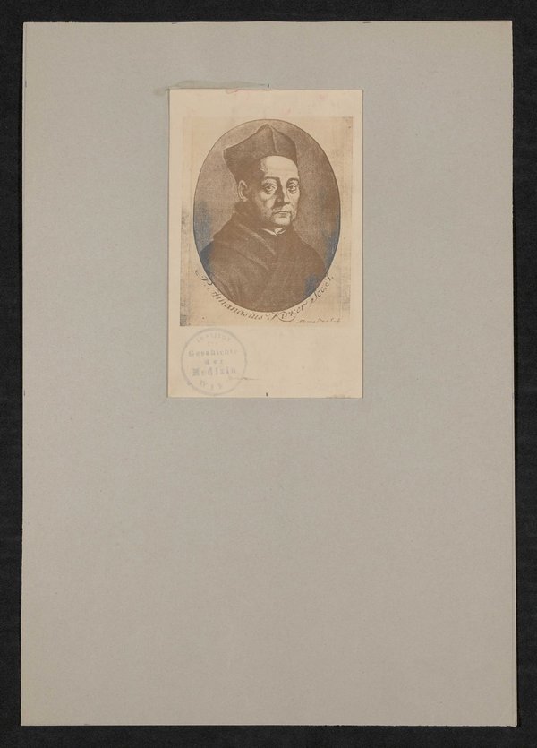 Der als Vorlage dienende Kupferstich ist vermutlich um 1675 von Cornelis Abrahamsz Bloemaert angefertigt worden. Vorder- und rückseitig mit Stempeln des Instituts für Geschichte der Medizin, Wien, versehen.