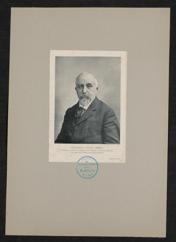 Ausschnitt aus einer unbekannten französischsprachigen Zeitschrift, herausgegeben von Deschiens. Dem Bild lag eine Fotografie von Pierre Petit zugrunde. Unter dem Bild befindet sich ein Stempel des Institutes für Geschichte der Medizin, Wien.