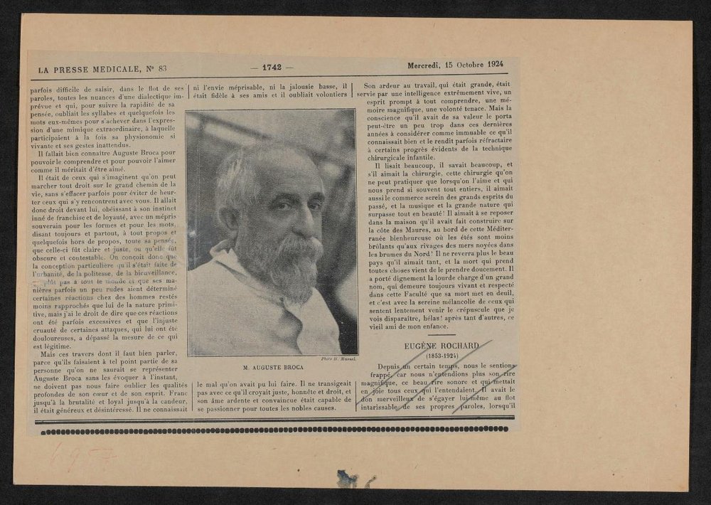 Das Bild von Henri Manuel und Nachruf stammen aus: La Presse Médicale, Nr. 83, 15.10.1924.