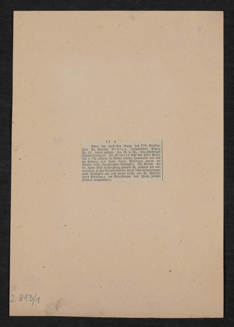 Auf der Vorderseite befindet sich ein Stempel des Instituts für Geschichte der Medizin, Wien.