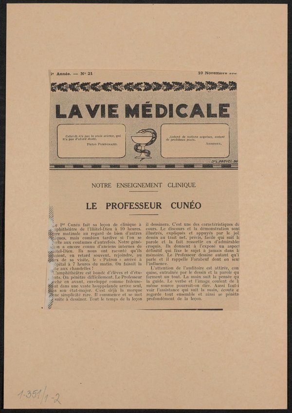 Die Vorlage wurde von Henri Manuel angefertigt. Das Bild ist in der Fachzeitschrift La Vie Medicale abgedruckt.