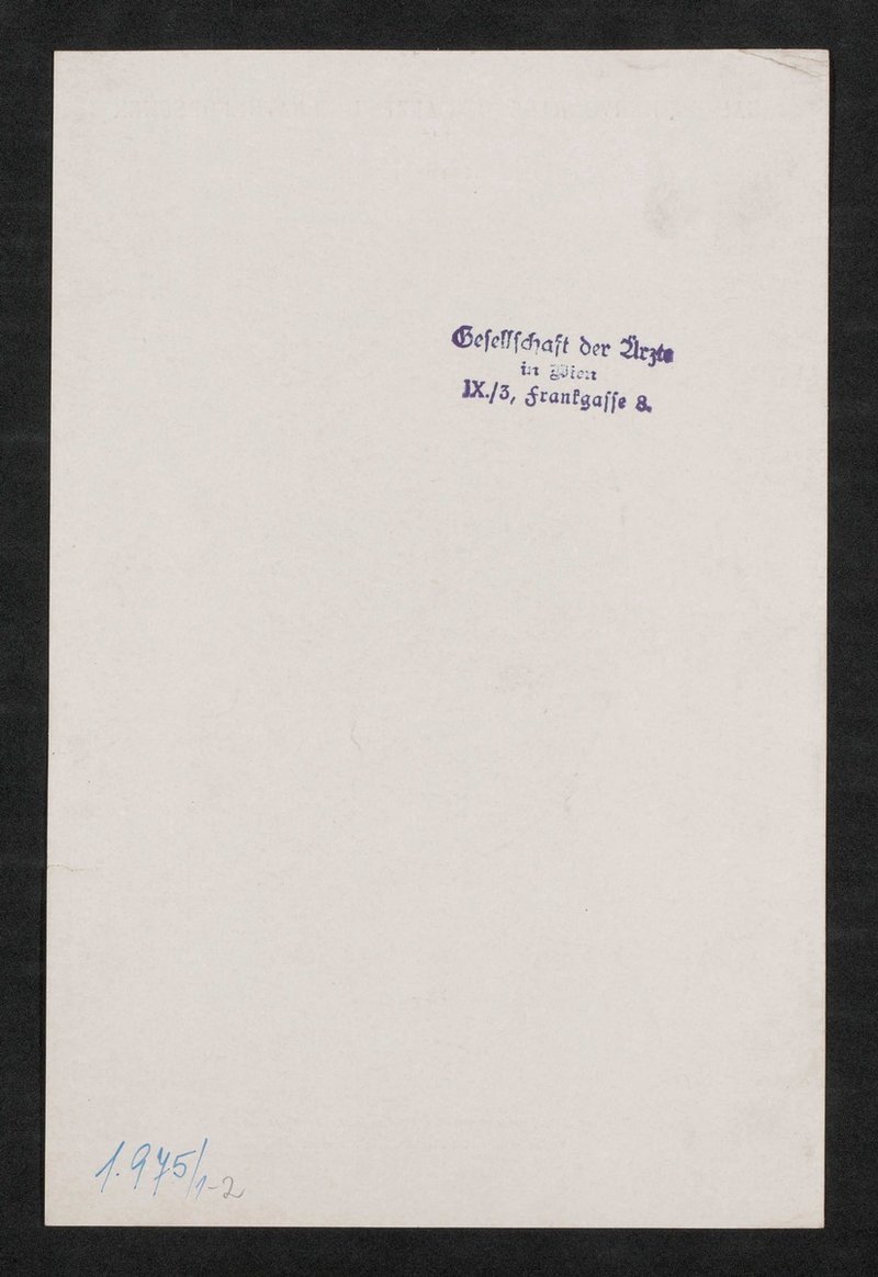 Auszug aus: Galerie hervorragender Ärzte und Naturforscher, in: Beilage zur Münchener medizinischen Wochenschrift, 1928, Bl. 411. Mit einem Stempel der Gesellschaft der Ärzte, Wien, auf der Rückseite.