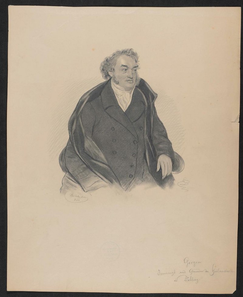 Die unleserlich signierte Bleistiftzeichnung basiert auf einer Lithografie von Josef Kriehuber, Wien, von 1836. Vorderseitig mit einem Stempel des Institutes für Geschichte der Medizin, Wien, versehen. Neg (9x12) 1103