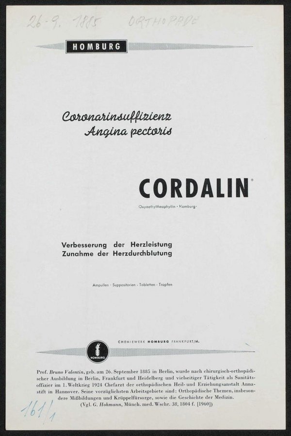 Auszug aus: Galerie hervorragender Ärzte und Naturforscher, in: Beilage zur Münchener medizinischen Wochenschrift, 1960, Bl. 664.