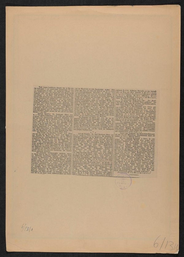 Ein Zeitungsbericht ist rückseitig angefügt.