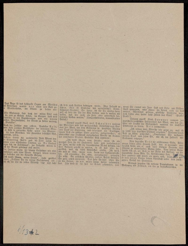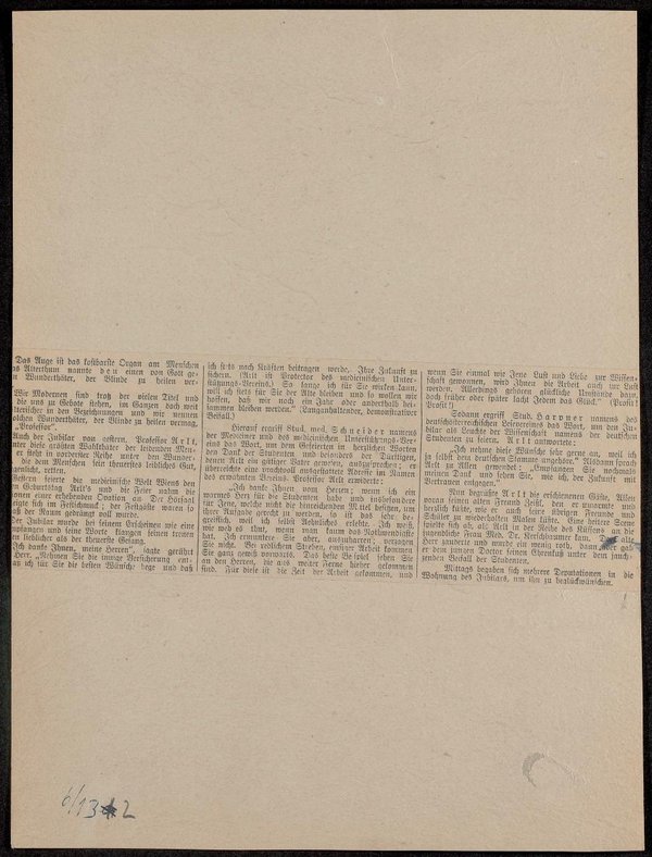 Ein Zeitungsbericht ist rückseitig angefügt.