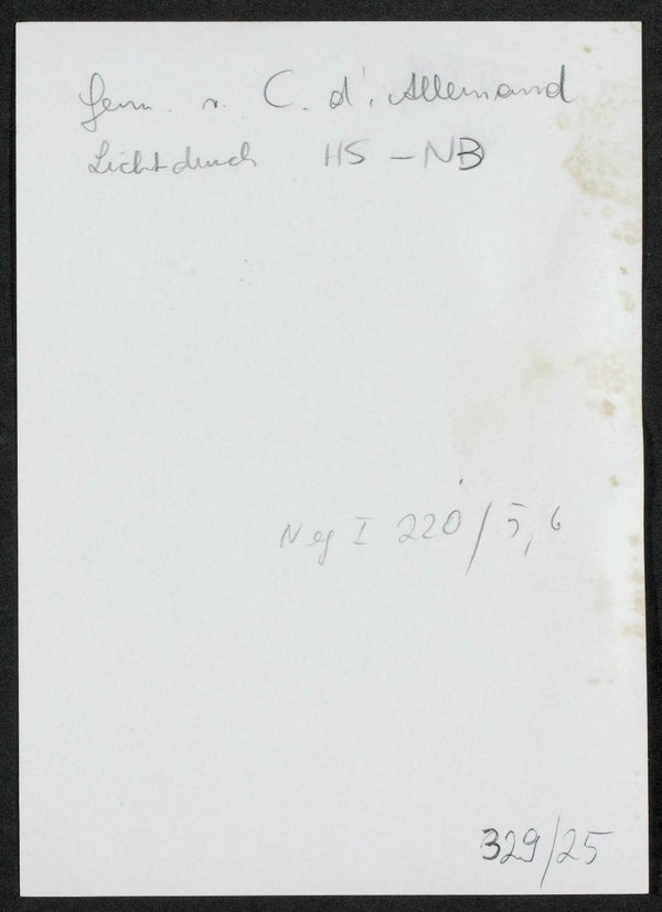Reproduktion eines Lichtdruckes, welcher auf einem Gemälde von möglicherweise Conrad L'Allemand basiert. Der Lichtdruck befindet sich in der Handschriftensammlung der Österreichischen Nationalbibliothek. Neg. I 220/5, 6