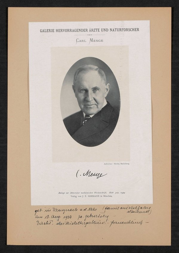 Auszug aus: Galerie hervorragender Ärzte und Naturforscher, in: Beilage zur Münchener medizinischen Wochenschrift, 1934, Bl. 507. Das Bild wurde von Julius Friedrich Lehmann verlegt.