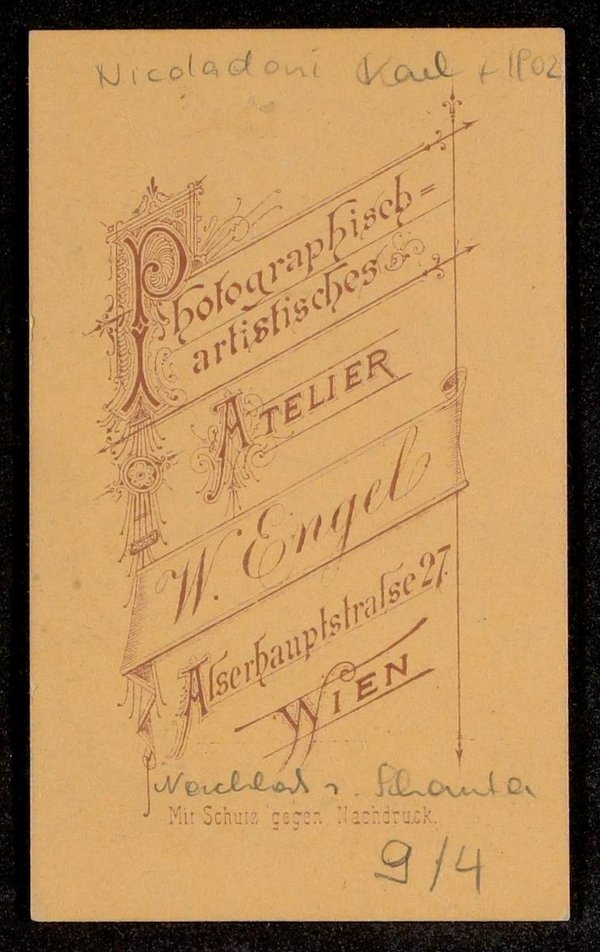 Die Fotografie wurde bei Wilhelm Engel, Fotograf, Wien, angefertigt.
