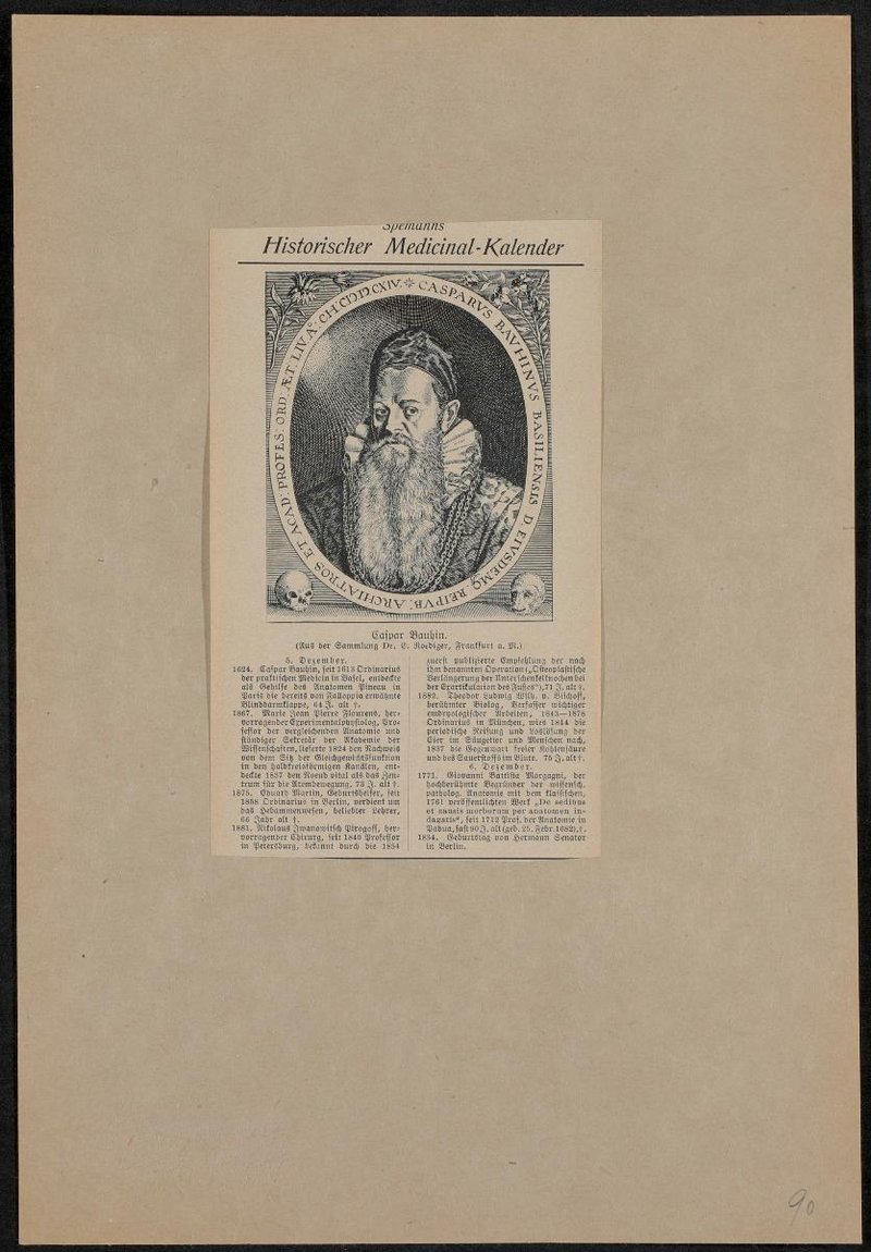 Kupferstich von Johann Theodor de Bry. Ausschnitt aus: Spemanns Historischer Medicinal-Kalender