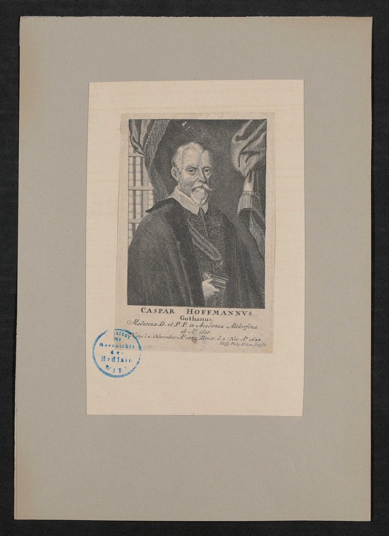 Der Kupferstich ist von Wolfgang Philipp Kilian angefertigt worden. Vorderseitig mit einem Stempel des Instituts für Geschichte der Medizin, Wien, versehen.