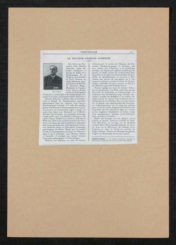 Der Ausschnitt stammte vermutlich aus der Ausgabe der französischsprachigen Zeitschrift Chanteclair. Revue artistique et littéraire, Nr. 275, Februar 1931.