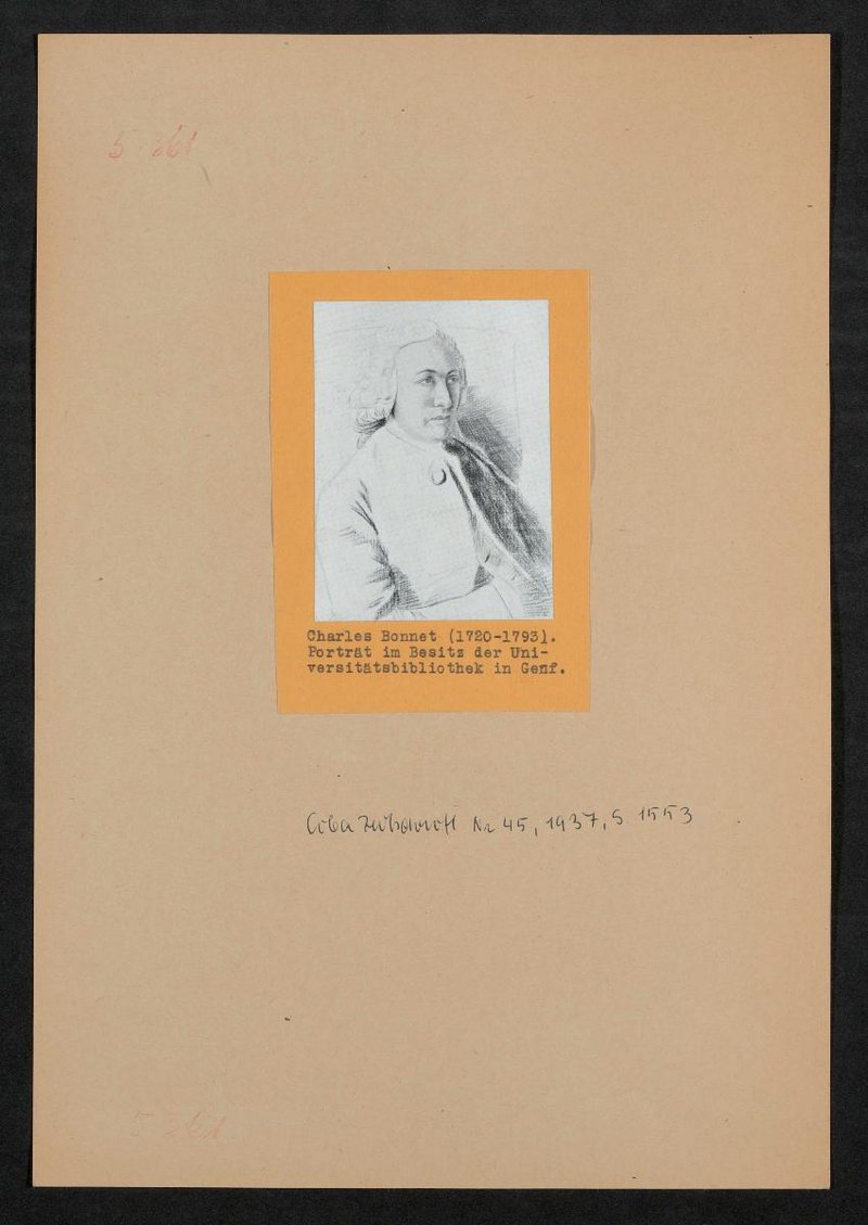 Mit Hinweis, dass sich die Vorlage im Besitz der Universitätsbibliothek Genf, Genf, befindet. Das Porträt ist der Ciba-Zeitschrift, Nr. 45, 1937, S. 1553, entnommen worden.
