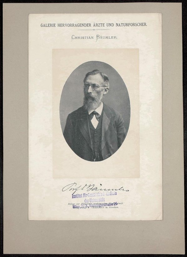 Auszug aus: Galerie hervorragender Ärzte und Naturforscher, in: Beilage zur Münchener medizinischen Wochenschrift, München.