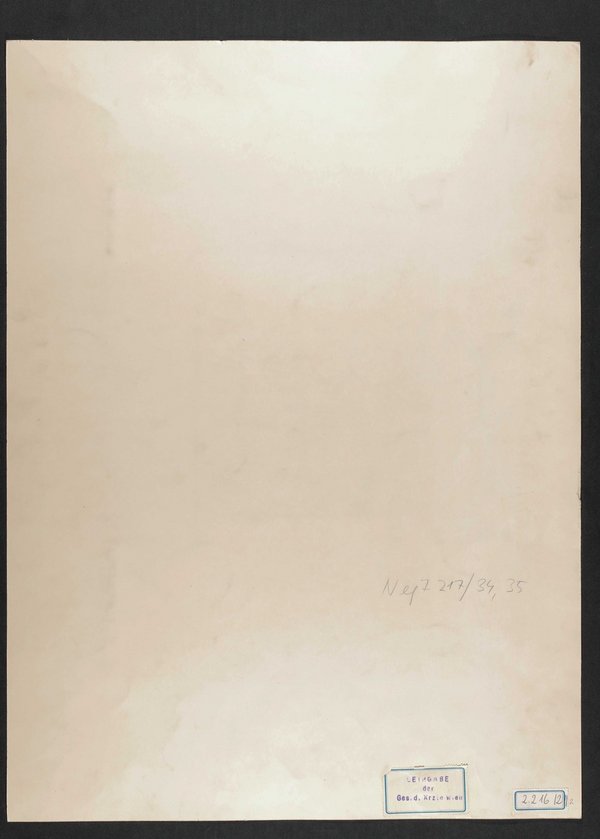 Der Kupferstich ist von Johann Friedrich Bolt auf Grundlage eines Gemäldes von Friedrich Johann Gottlieb Lieder angefertigt worden. Mit einem Stempel der Gesellschaft der Ärzte, Wien, auf der Rückseite. Neg I 217/32, 33 Neg (9x12) 266
